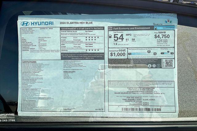 Abyss Black 2024 Hyundai Elantra Hybrid Blue FWD 6-Speed Dual Clutch I4At Homer Skelton Hyundai we are dedicated to providing exceptional service and a great car-buying experience. With our extensive selection of Hyundai vehicles you'll find the perfect vehicle to meet your lifestyle and budget. Our knowledgeable and friendly team is here to assist you every step of the way ensuring that you make an informed decision. We value transparency integrity and building long-lasting relationships...